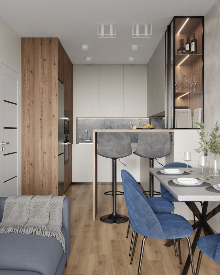 Zadanie: Zrealizować wszystkie życzenia, których jest dużo dla 4 osób, oraz połączyć życzenia żony na ciemne kolory i życzenia męża na jasne kolory. Dlatego małżeństwo dosłownie podzieliło mieszkanie na strefy, w każdej z których każdy członek rodziny podejmował swoją decyzje. Być może z perspektywy ogólnego wystroju i projektu nie jest to dobry pomysł...