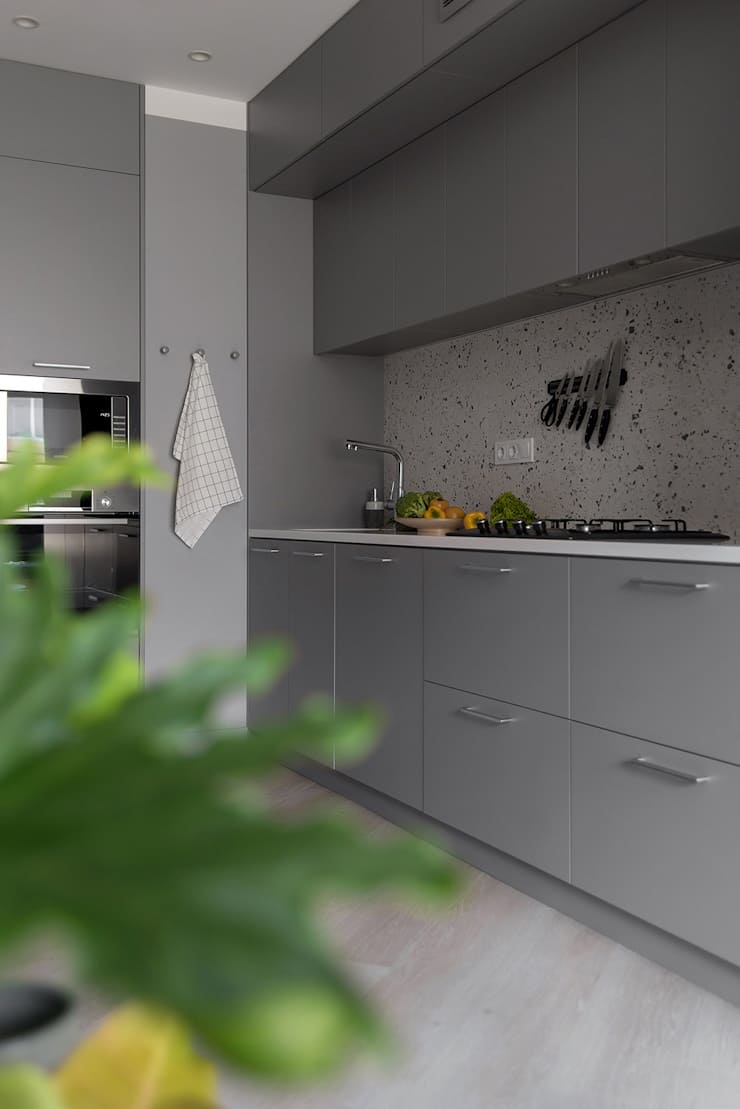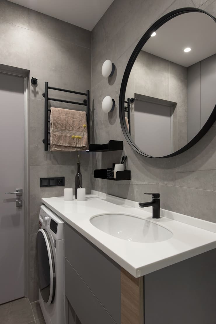 Dla głównej przestrzeni zdecydowaliśmy się na szarą gamę kolorową, co sprawia, że jest ona spokojna, tworzy przytulne klimaty. Wybraliśmy szlachetny kolor, który rozjaśniliśmy teksturami i światłem.