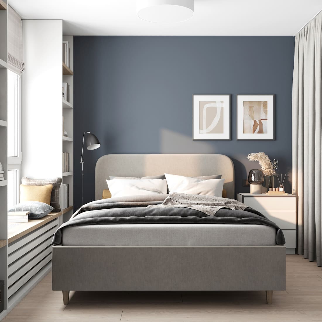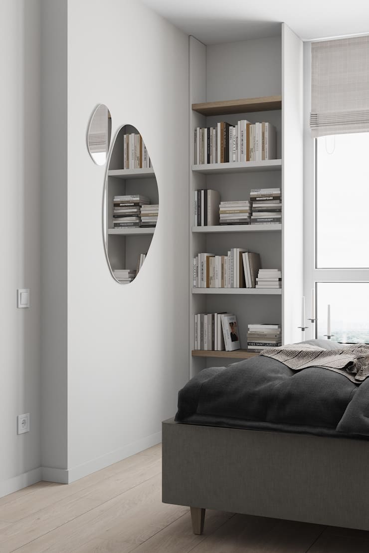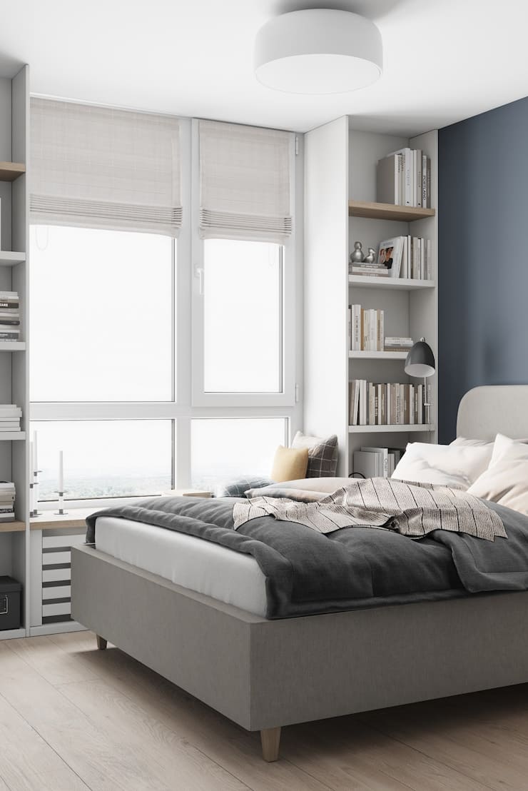 Mieszkanie dla młodych, aktywnych marzycieli od razu rzuca się w oczy swoim wnętrzem, zwłaszcza w sypialni, gdzie przewidziano miejsce przy oknie, aby cieszyć się widokiem zachodów słońca i pasjonującymi książkami.